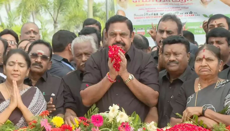 அதிமுகவை என்றும் காப்போம் உறுதிமொழியோடு எம்.ஜி.ஆர் நினைவிடத்தில் இபிஎஸ் மரியாதை