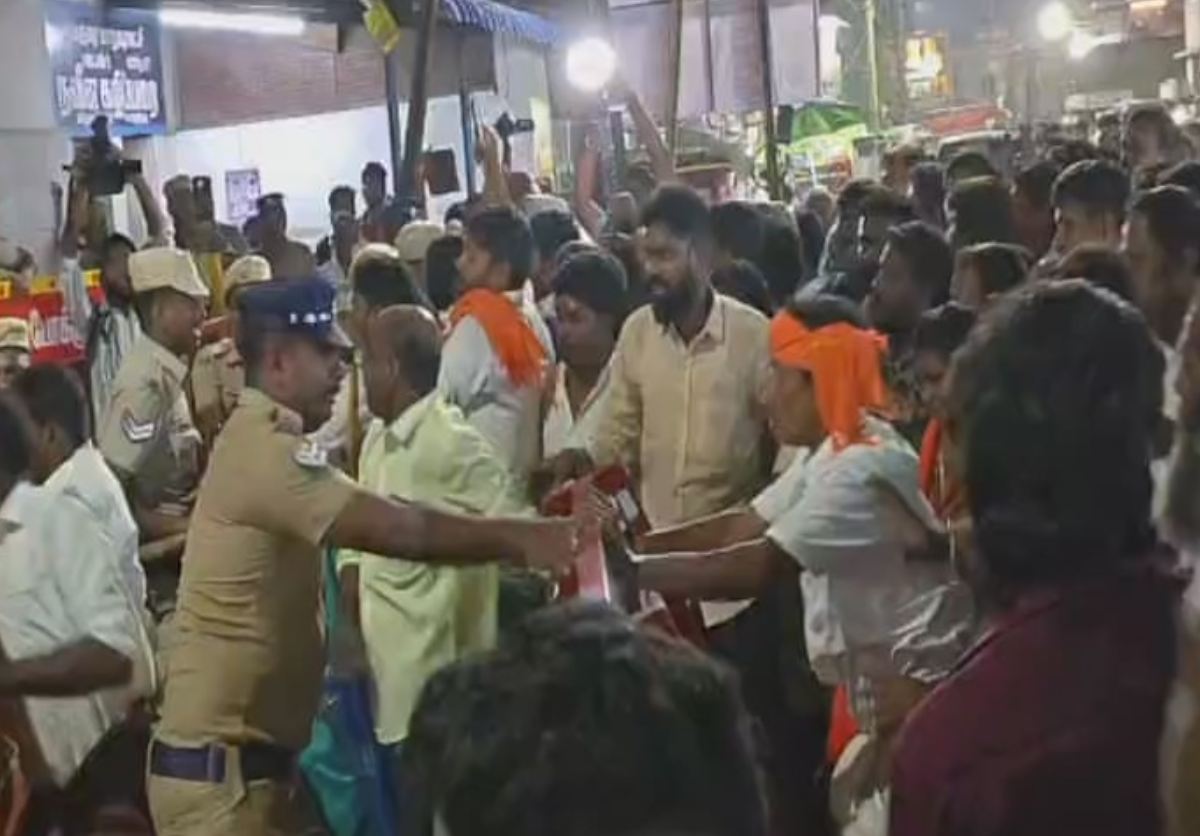 இதே போல் பி.ஜே.பி. உள்ளிட்ட ஏராளமான இந்து அமைப்பினர் தீபத்தூணில் தீபம் ஏற்ற வலியுறுத்தி போராட்டத்தில் ஈடுபட்டனர். திருப்பரங்குன்றம் மலை மீது ஏற முயன்ற போராட்டக்காரர்களை காவல்துறையினர் தடுப்புகளை அமைத்து தடுத்தனர். ஆனால் தடுப்புகளை தகர்த்தி போராட்டக்காரர்கள் முன்னேறிச் சென்றதால் இரு தரப்பினருக்கும் கடும் தள்ளுமுள்ளு ஏற்பட்டது.