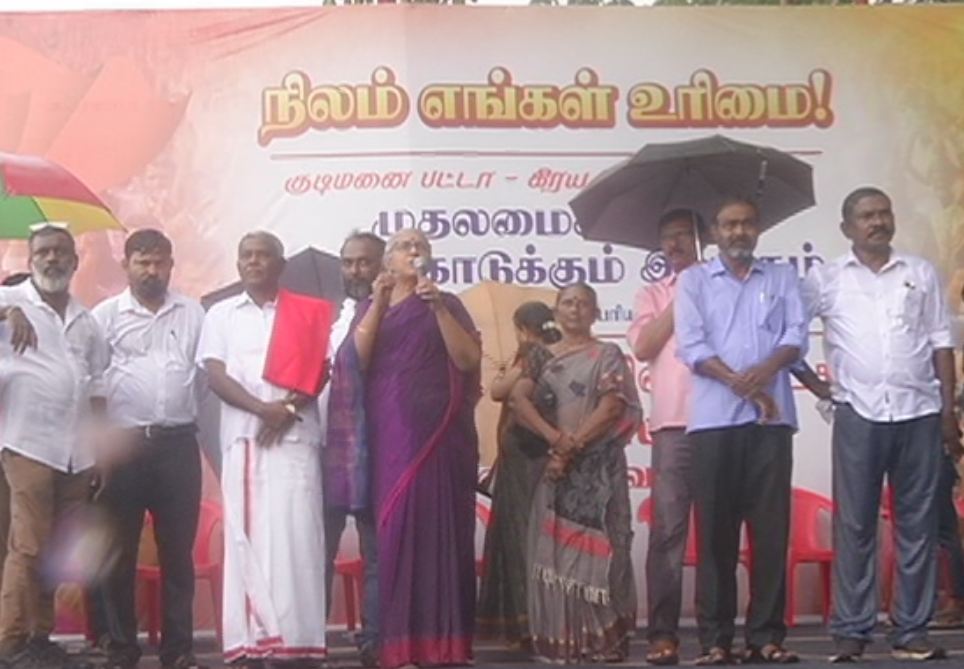குடிமனை பட்டா வழங்க வலியுறுத்தி சென்னையில் மார்க்சிஸ்ட் கம்யூனிஸ்ட் கட்சி சார்பில் இன்று ஆர்ப்பாட்டம் நடைபெற்றது. சிவானந்தா சாலையில் நடைபெற்ற இந்த ஆர்ப்பாட்டத்தில் ஆயிரத்திற்கும் மேற்பட்ட பொதுமக்கள் கலந்து கொண்டு முழக்கங்களை எழுப்பினர்.